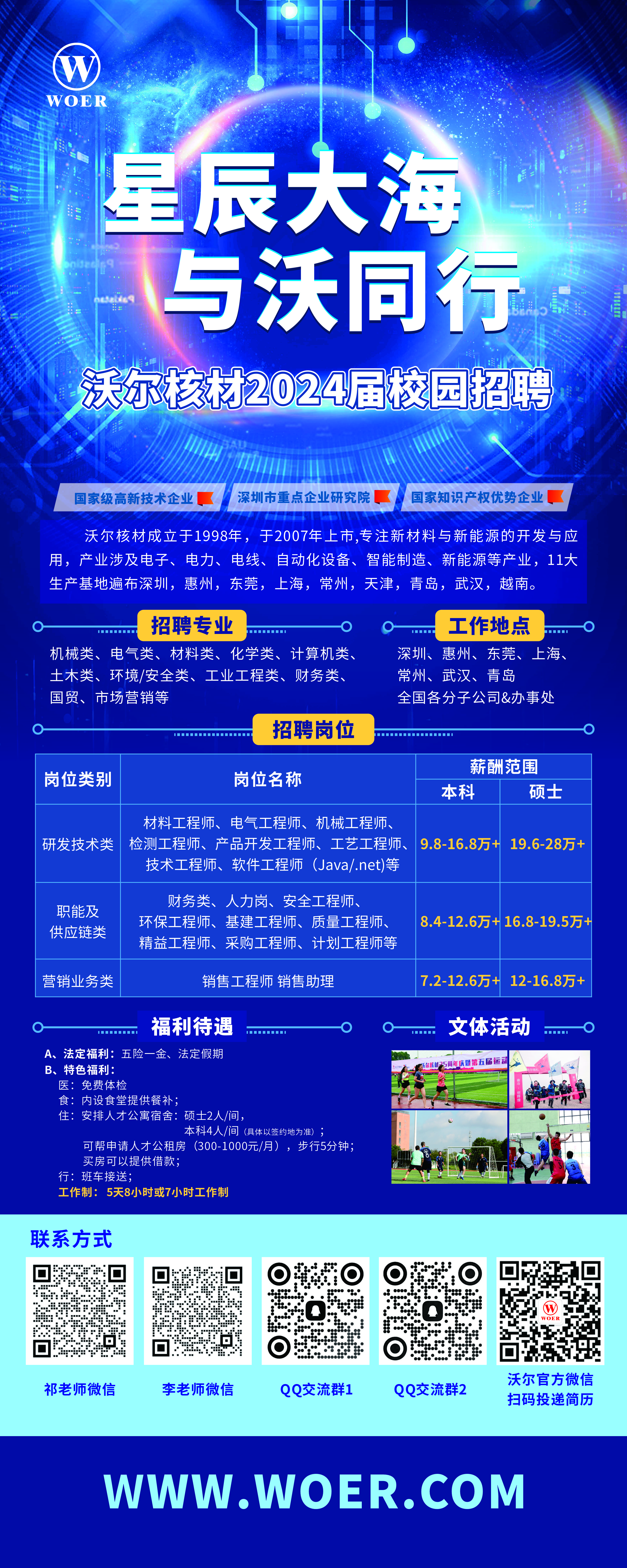 深圳市沃尔核材股份有限公司2023年秋季招聘