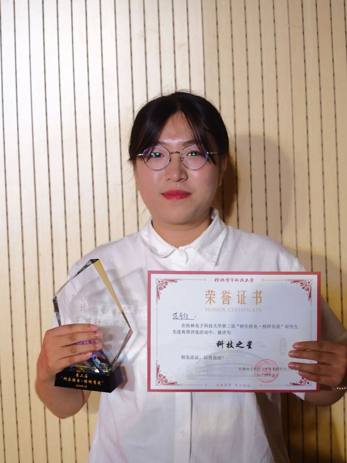 范可行,女,汉族,共青团员,建筑与交通工程学院2022级交通运输工程专业硕士研究生,学科综合成绩排名专业第一;2022-2023年获得学业一等奖学金;2023“优秀研究生”;作为第一负责人获得第十一届“挑战杯”广西大学生课外学术科技作品竞赛一等奖;”第九届中国互联网+大学生创新创业大赛广西赛区金奖”等省市校及其他荣誉共计10余项;期间参与申请并授权道路交通方面发明及实用新型专利5项。
