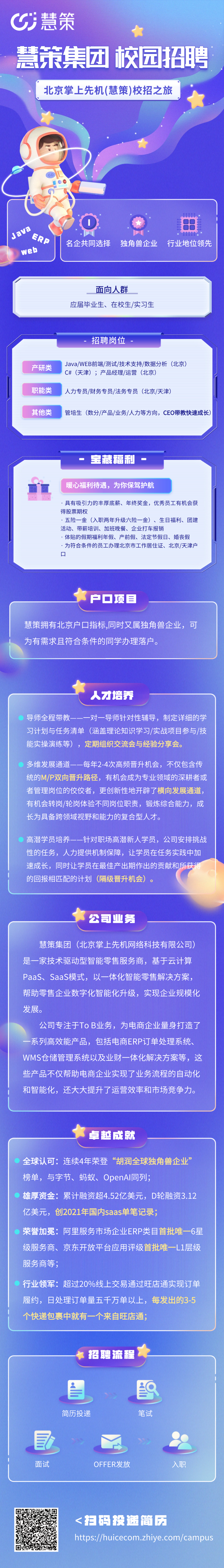投递链接:https://huicecom.zhiye.com/campus/jobs?shareId=d61d502a-3da1-434f-a547-1b612c3d7596&shareSource=2&qr=1