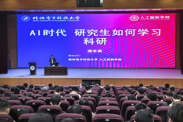 4月13日,三亿官方官网三亿(中国)_三亿(中国)第20期“研在桂电·创新论坛”主题讲座在花江校区会议中心大礼堂举办,本次讲座以“AI时代,研究生如何学习科研?”为主题,邀请了人工智能学院副教授谭本英担任主讲嘉宾。