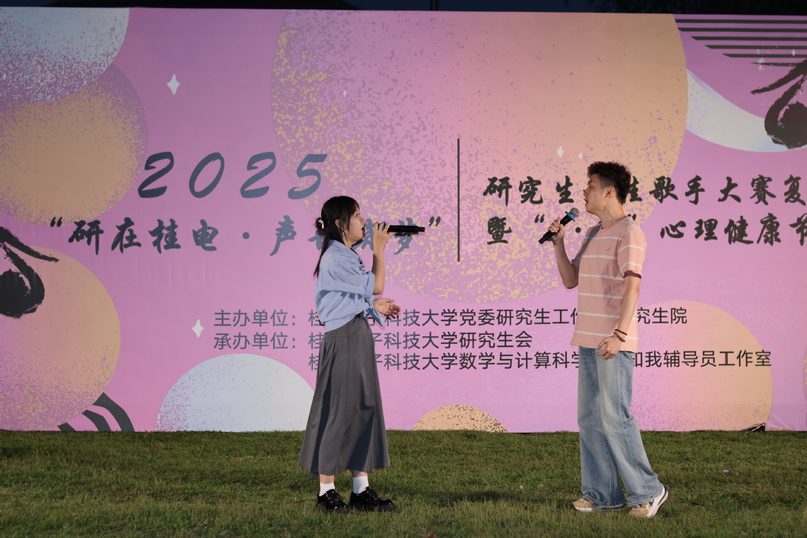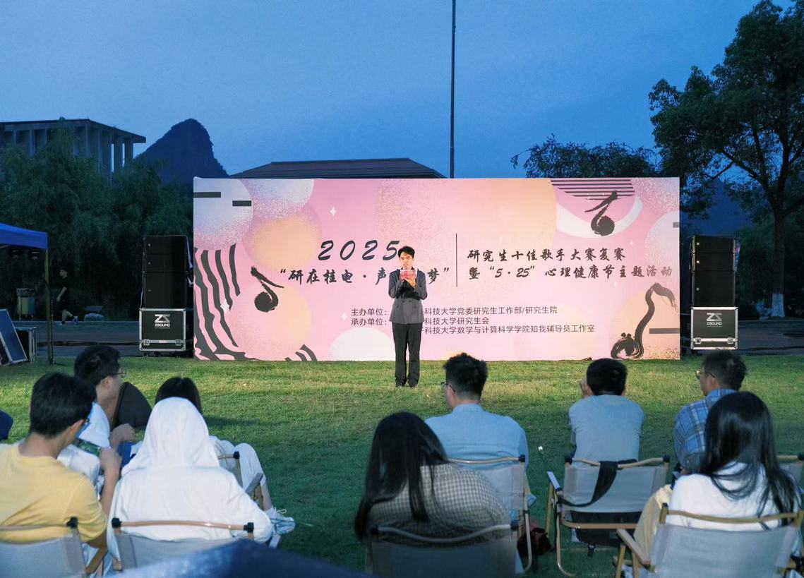 5月10日,2025“研在桂电·声韵筑梦”研究生十佳歌手复赛暨“5·25”心理健康节主题活动在思齐湖运动区圆满举行。本次活动现场设置了心理治愈背景墙、情绪文案悬挂灯牌与励志明信片等互动区,吸引了逾700名师生到场观看。