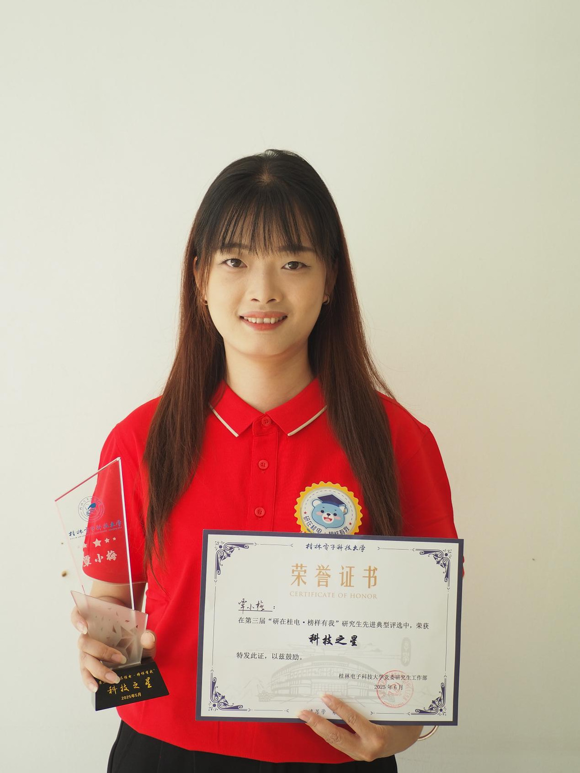 覃小梅,光电工程学院光学工程专业2022级硕士。综合测评专业第一,获国家奖学金、学业奖学金一等及二等奖,荣获国家级竞赛一等奖3项、省部级二等奖1项。发表SCI一区Top期刊论文并获国家奖学金;主持校级研究生创新项目,参与3项发明专利;在国际光学会议CIOP作英文口头报告;获“兆易创新杯”第十九届中国研究生电子设计竞赛全国一等奖、光电设计竞赛东南赛区二等奖,展现出突出的科研创新能力。