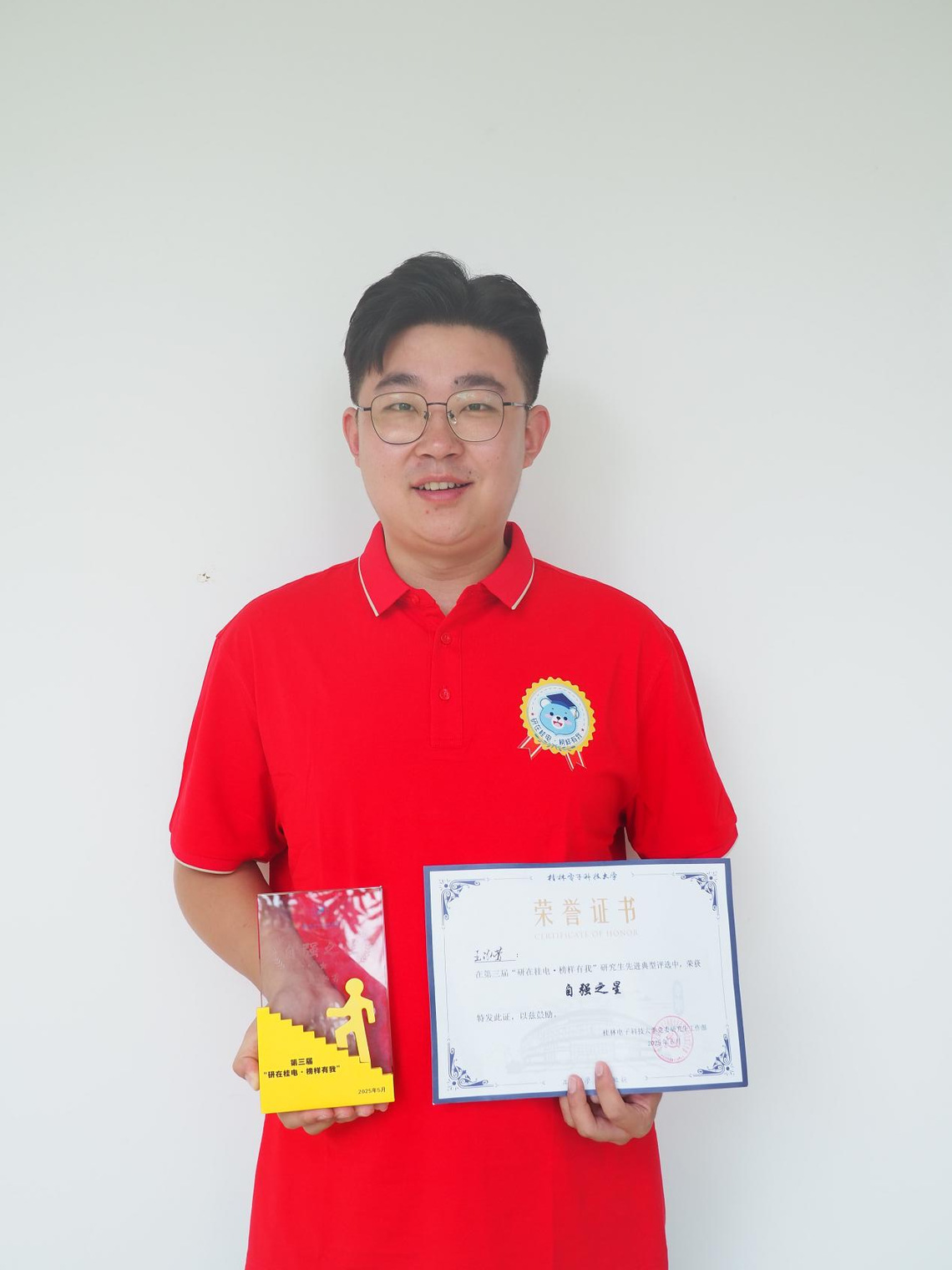社会实践方面,热心公益与学生工作。作为校研究生会执行主席、班级班长,带领团队举办多项“研在桂电・”系列活动,获“优秀研究生干部”“优秀共青团干部”等称号;参与第 24 届研究生支教团、研究生招生考试等志愿服务,践行奉献精神。家庭条件困难的他,通过担任助管、助教及兼职辅导员补贴生活,2023 年获“中国大学生自强之星”称号,以坚韧诠释自强本色。