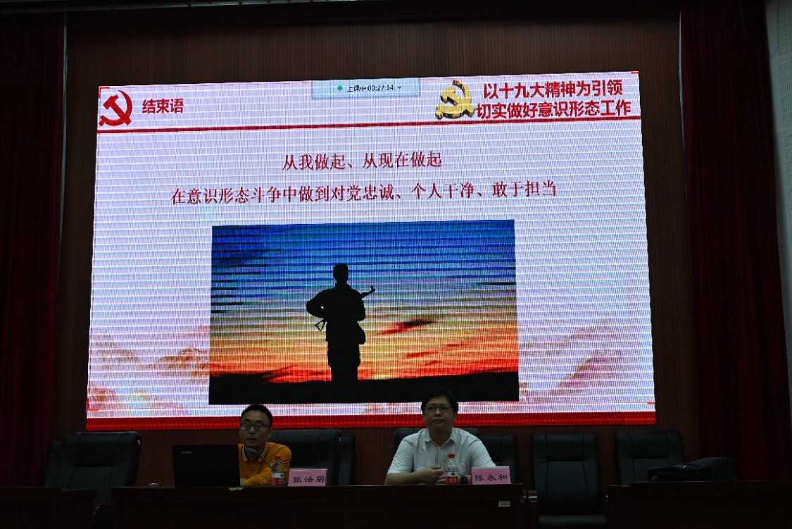 会议上,陈副书记就学校安全、网络文明、网络信息安全、疫情防控等问题作出指导,要求同学们提高网络文明意识,为创造清朗的网络空间共同努力。张法碧教授带领研究生们深入学习了十九大精神,探讨了意识形态的重要性以及当前面临的挑战,并指出要积极应对挑战加强意识形态建设,警惕境外势力思想渗透,提倡从我做起、从现在做起,在意识形态斗争中做到对党忠诚、敢于担当。