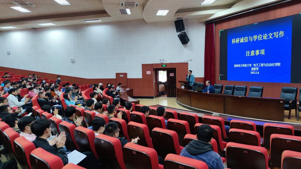 3月6日下午,电子工程与自动化学院在金鸡岭校区三教一楼报告厅以线上线下结合的方式举办科研诚信与学位论文写作的专题讲座,本次讲座由学院分管研究生工作的胡放荣副院长主讲,研究生辅导员主持,全体毕业班硕士、博士参加。