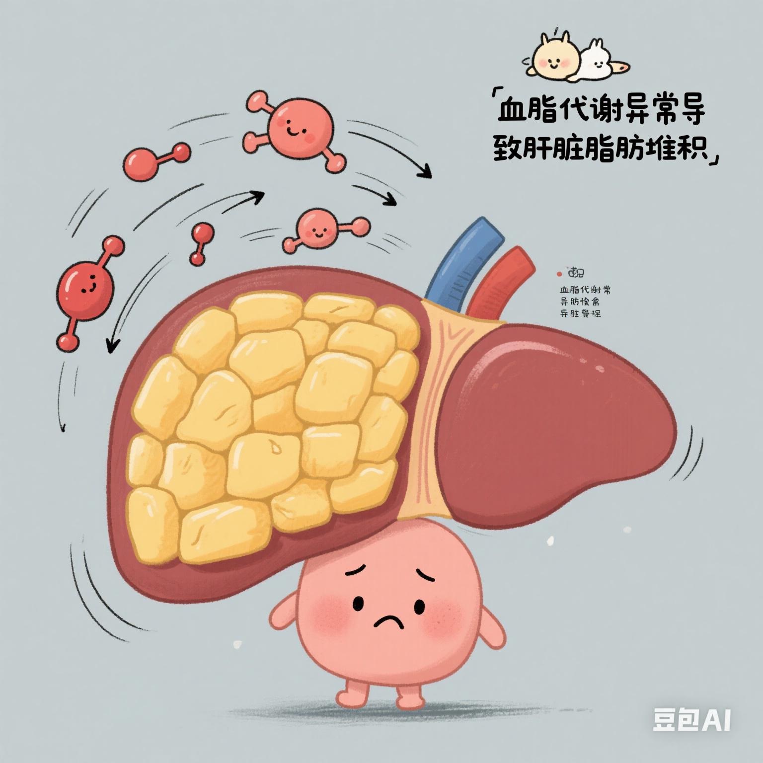 • 脂肪肝:肝脏脂肪堆积,60% 的高血脂人群合并脂肪肝