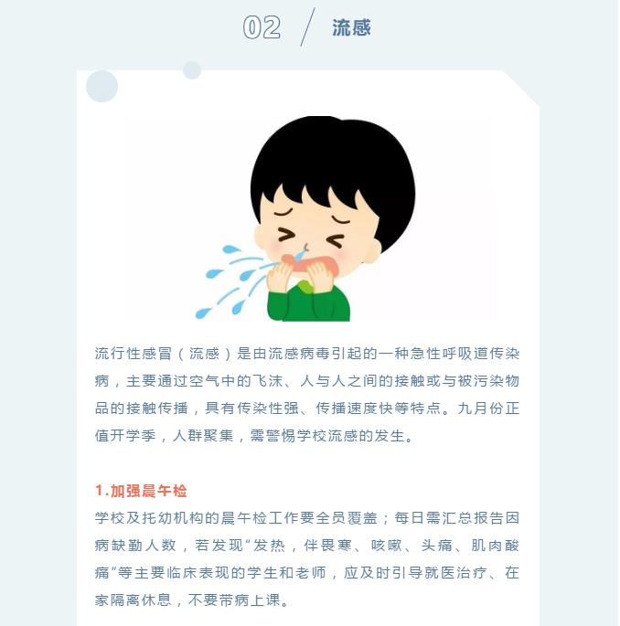 9月份健康提示:注意预防新冠肺炎、流感、水痘、手足口病、霍乱及诺如病毒感染肠道传染病等