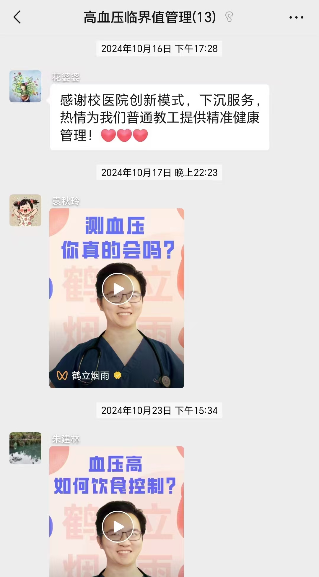 校医院作为桂林市人民医院医联体成员医院,依托市人民医院技术力量及管理经验,组建了高血压健康管理团队。团队为学校师生员工免费开展高血压全周期健康管理,努力为师生员工的健康保驾护航。