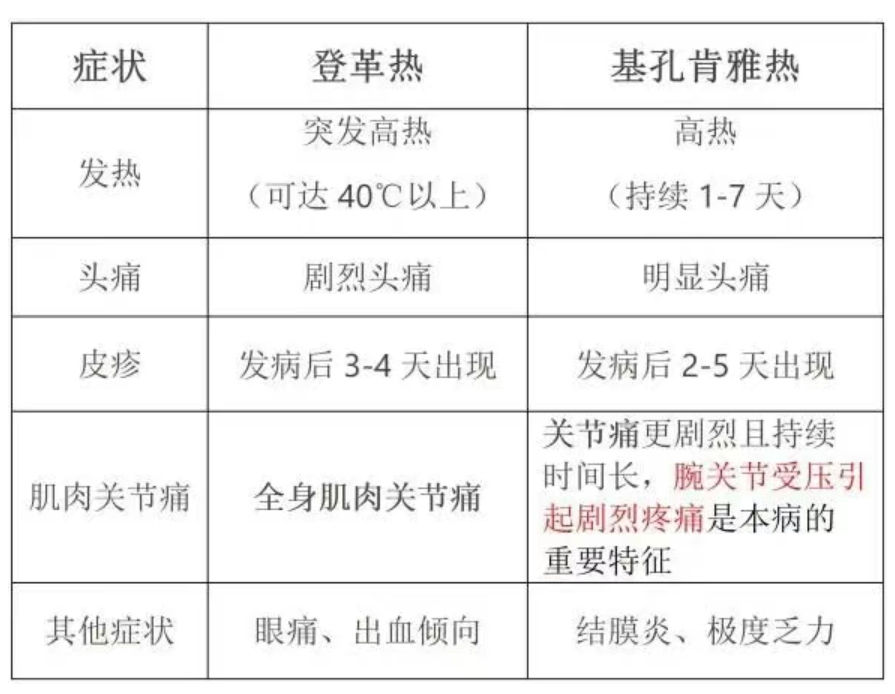 关键鉴别点:如果高烧时出现皮肤瘀点、牙龈出血不止,要警惕登革热!如果烧退后关节痛得怀疑人生,甚至几个月还无法灵活活动手指脚趾,大概率是基孔肯雅热