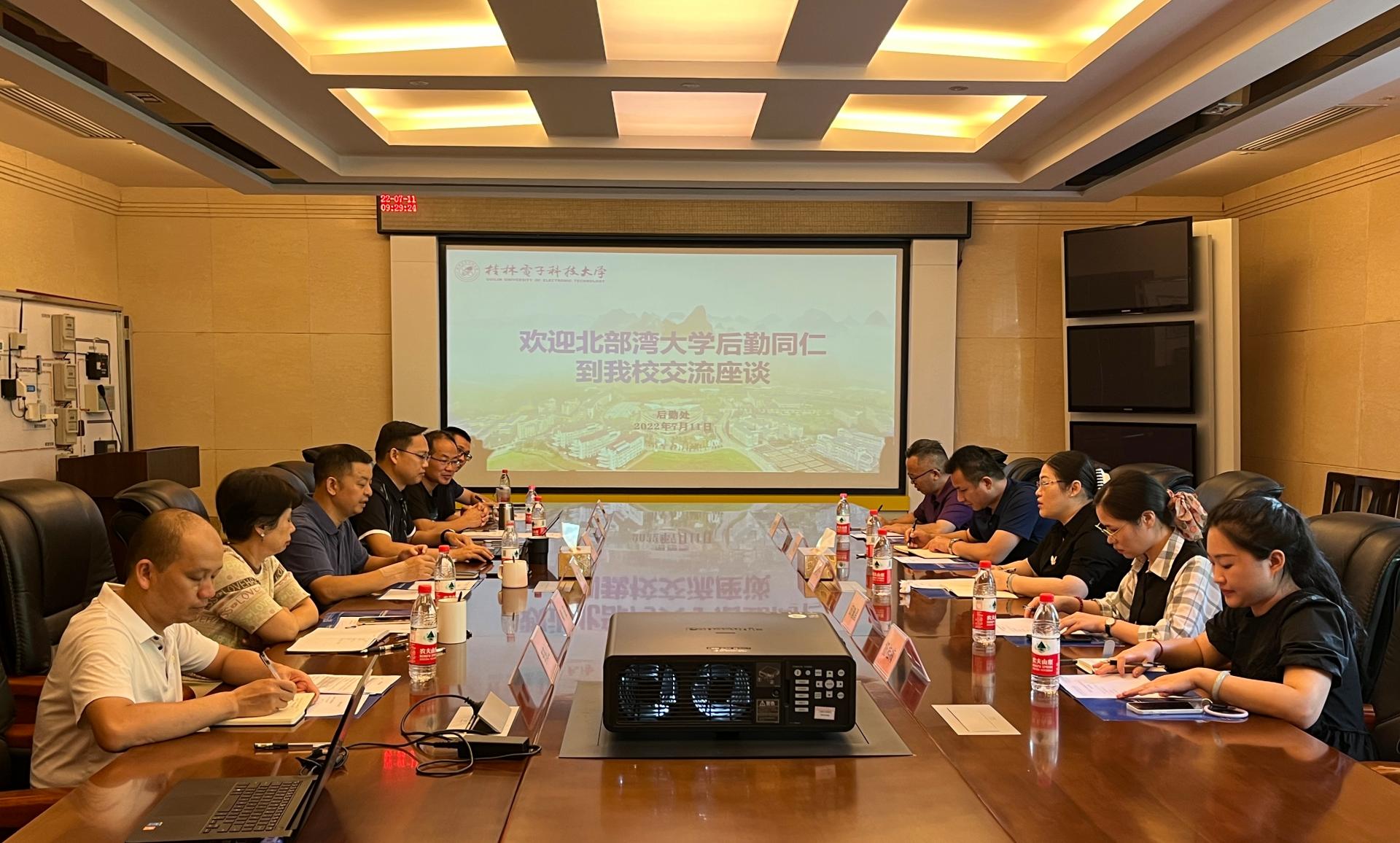 7月11日上午,北部湾大学后勤服务集团总经理容泽文一行5人到我处调研交流。我处处长黎昕、副处长徐波及相关科室科长参加了调研座谈会。