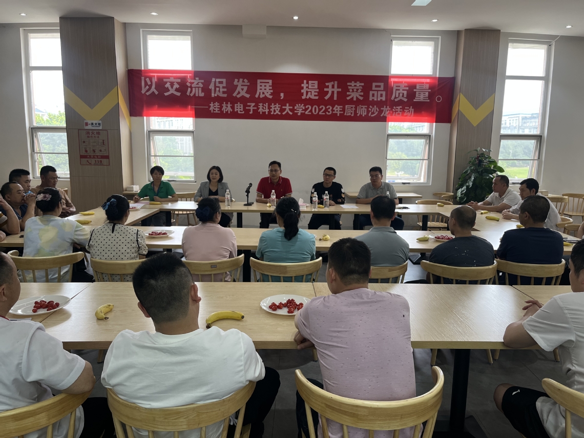 为提升食堂菜品质量,推进“为民解忧办实事”实践活动落地,5月25日下午,饮食科在花江校区怡园教工餐厅举办了“以交流促发展,提升菜品质量”为主题的厨师沙龙活动。后勤处副处长徐波出席活动,饮食科办公室人员,自营餐厅负责人、红案及白案厨师等40余人参加沙龙活动。