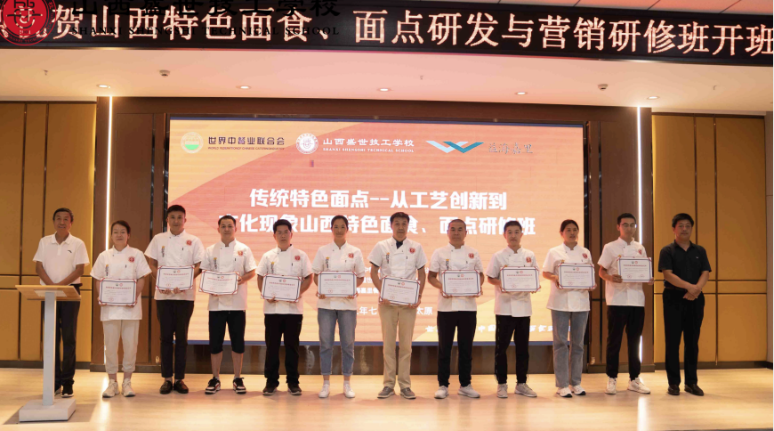 7月26日-7月29日,在山西盛世餐饮旅游技工学校,白案厨师参加了“山西特色面食、面点研发与营销研修班”学习。他们分别学习了山西特色面食文化及传统打卤面、纸皮陷饼、黄金千层饼、太原大拇指包等21个面食品种的原料搭配、制作过程等内容。