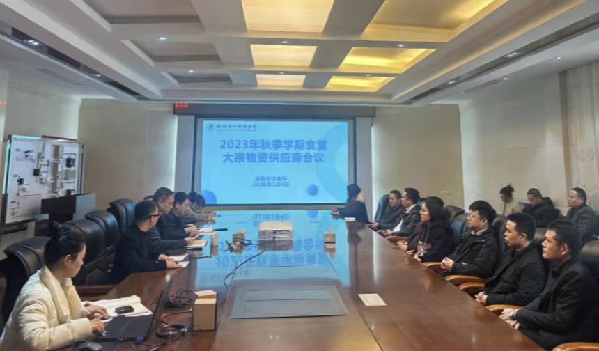 为加强食堂大宗物资管理,压实校园食品安全责任,1月4日下午,后勤处饮食科在后勤综合楼节能会议室组织召开了期末食堂大宗物资供应商会议。后勤处副处长徐波出席会议,各大宗物资供应商代表及饮食科管理人员等参加会议。会议由饮食科科长廉森瑞主持。