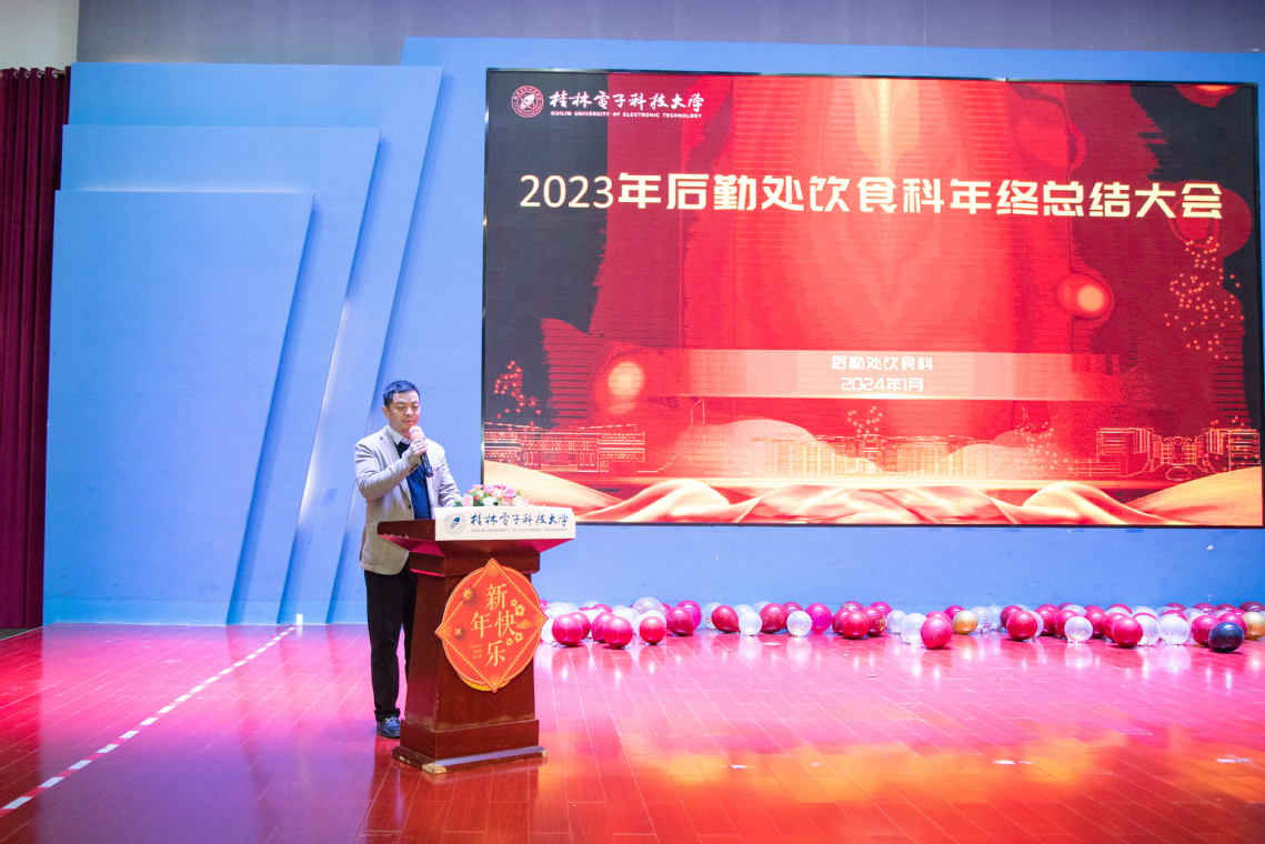 1月5日下午,后勤处饮食科在花江校区红亮学生活动中心演艺厅举办了2023年饮食文化节闭幕式暨2023年年终总结大会。后勤处处长黎昕、副处长徐波出席活动。