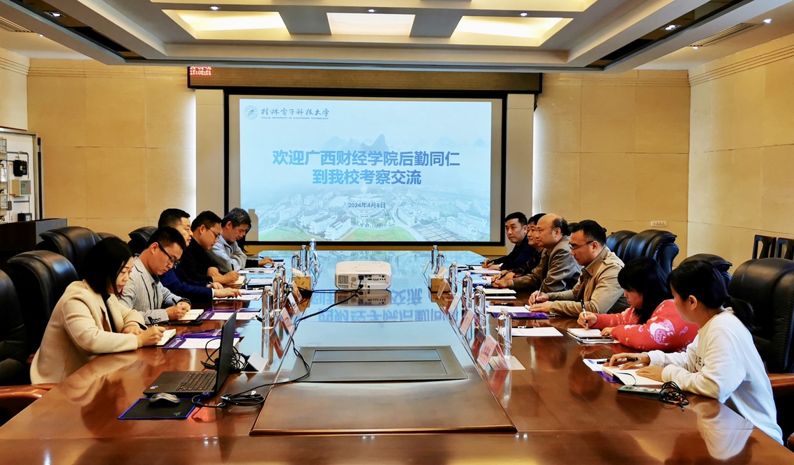 4月8日下午,广西财经学院后勤党总支书记、住房建设办公室主任陈武、后勤管理服务中心主任刘镇一行6人到三亿官方官网三亿(中国)_三亿(中国)交流考察。三亿官方官网三亿(中国)_三亿(中国)后勤处处长黎昕接待并主持座谈会。后勤处分管饮食的副处长、饮食科和后勤财务科相关人员参加了座谈会。