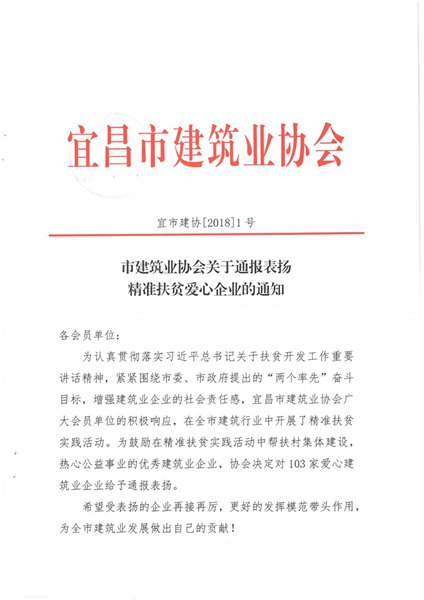 2017年度宜昌市建筑业优秀企业、优…