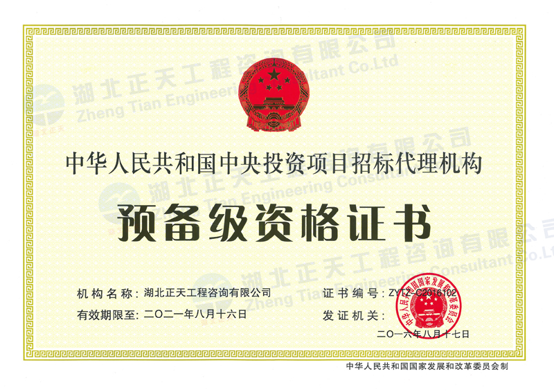 中央投资项目招标代理机构资格证书…