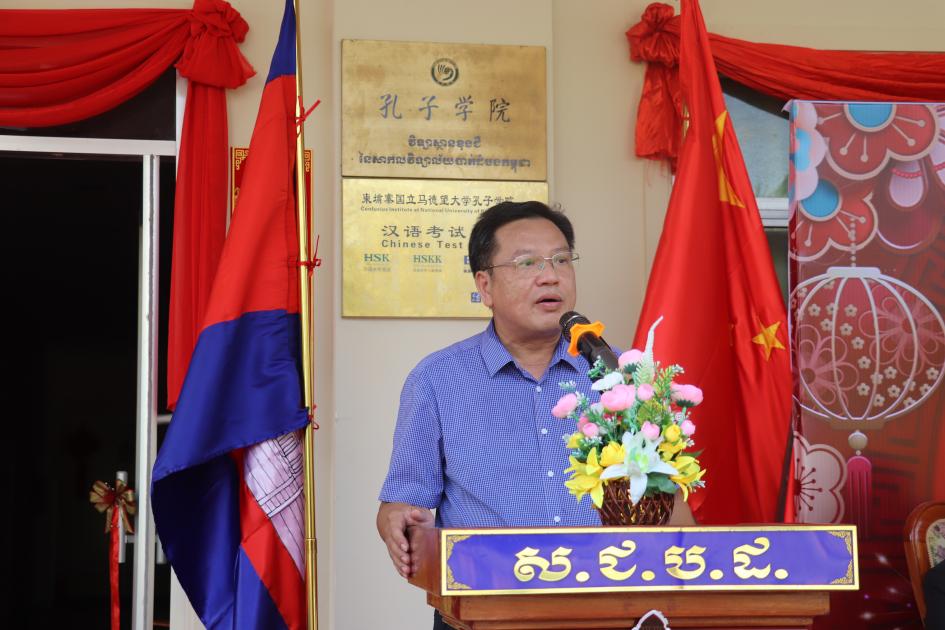 金牛扬蹄辞旧岁,玉虎腾跃迎新春。2022年1月28日当地时间下午三点,国立马德望大学孔子学院成功举办“庆新年--中华文化体验活动”。柬埔寨国立马德望大学校长索坤阁下、副校长兼孔院柬方院长山姆莱尼、孔院中方院长易永忠、柬埔寨第五军区军官、中资企业教学点的领导、Pich Chenda中学教学点校长和各部门负责人,及国立马德望大学各院系领导,孔子学院师生共计300余人欢聚一堂,共同迎接即将到来的中国新年。