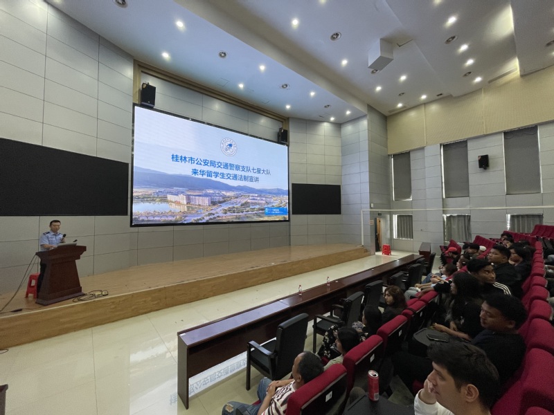暑期将至,安全防范工作一直是国际学院假期重要工作之一。近日,三亿官方官网三亿(中国)_三亿(中国)顺利开展来华留学生暑期安全教育大会暨交通法治宣讲会,会议邀请了桂林市公安局交通警察支队七星大队苏警官对全体来华留学生开展交通安全教育,国际学院全体留管干部、老师以及200余名来华留学生参会。