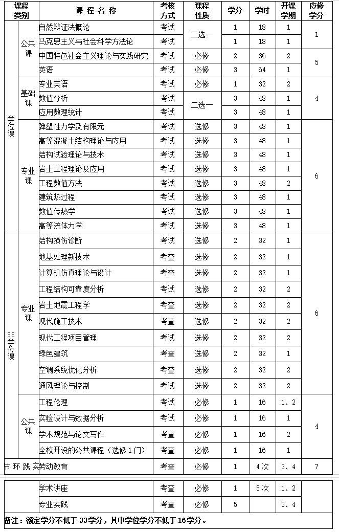 1、教学环节包含课程学习和科研与实践必修环节两部分,总学分不得少于33学分,其中学位课不少于16学分,必修课包括学术讲座、专业实践等。