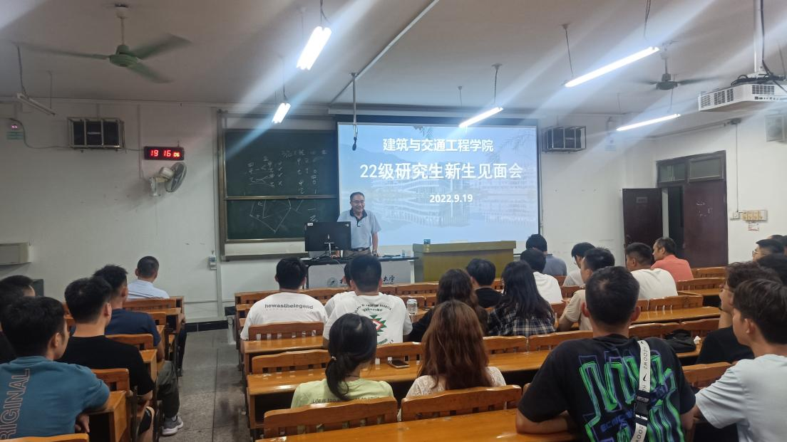 9月19日晚,建筑与交通工程学院在金鸡岭校区8401教室召开2022级研究生新生见面会,学院院长王涛,副院长郑文亨、部分研究生导师代表和2022级新生一同参加了了见面会,会议由副院长郑文亨主持。