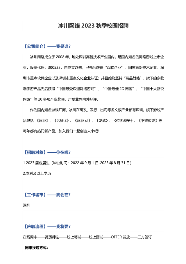 冰川网络2023秋季校园招聘
