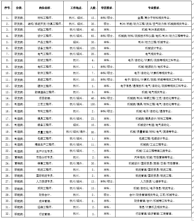 浙江三花汽车零部件公司9月25日来校招聘