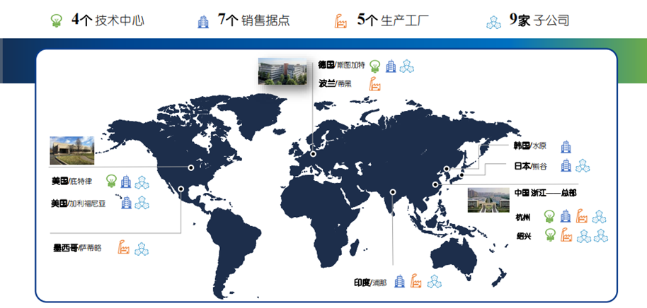 浙江三花汽车零部件公司成立于2004年,全球雇员人数8000+,建立了完善的国际化布局(中国杭州、绍兴、波兰、墨西哥等)。主要经营汽车热管理系统各类核心系统及零部件,产品包括膨胀阀、贮液器、控制器、电子水泵水阀、电磁阀、冷媒球阀、集成组件、各类车用换热器等,已成为全球各系所有主要新能源汽车制造商的战略供应商。公司被评为国家级高新技术企业、浙江省“省级新能源汽车空调系统重点研究院”,并建有纯电动汽车空调和热管理技术国家级工程研究中心、院士工作站、博士后工作站。