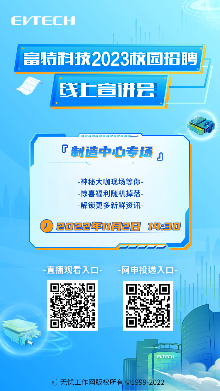 移动端网申入口:扫码关注“富特科技EVTECH”,点击“加入我们”-“校园招聘”