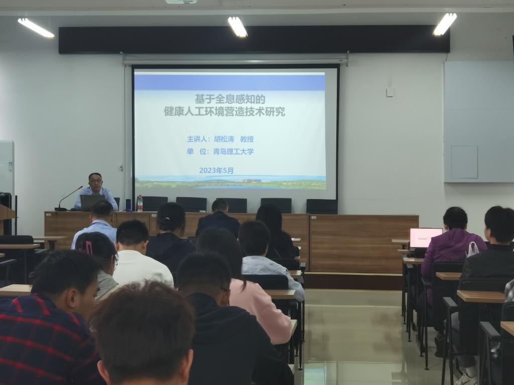 胡松涛教授以“基于全息感知的健康人工环境营造技术研究”为主题,从环境-人体-健康的关系、舒适与健康相关性实验研究、机体感知、认知及反应全过程的监测及研究手段,提出营造舒适健康环境对人体健康的重要性,展望了未来研究健康人工环境营造技术研究方向。报告会上,胡教授亲切回答了师生提出的问题。本次学术报告得到了师生的热烈反响!