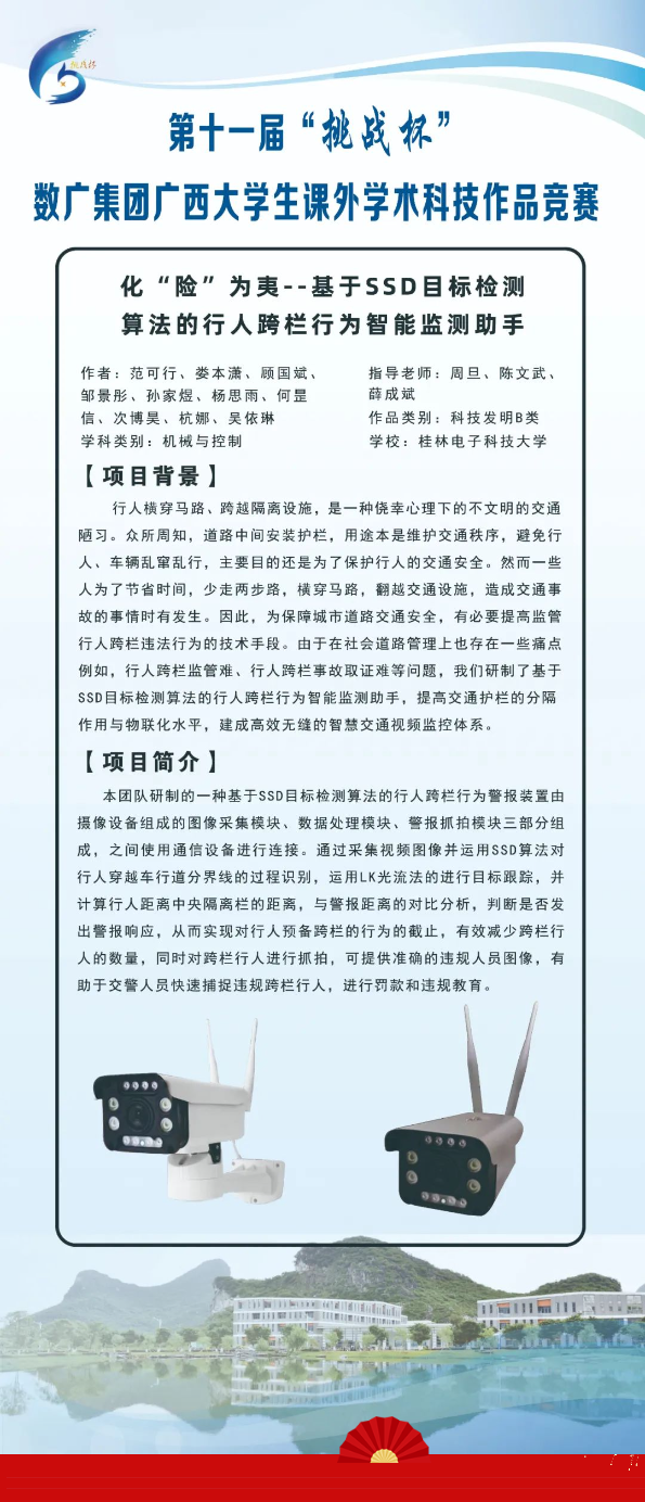 范可行团队所设计的“化“险”为夷——基于SSD目标识别算法的行人跨栏行为警报装置研发”项目荣获广西区赛一等奖。