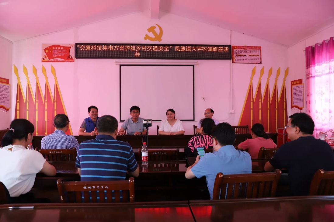在大坪村委召开的座谈会上,主管凤凰镇交通相关工作的副镇长肖薇给建筑与交通工程学院交通工程系教工党支部全体成员介绍了凤凰镇交通基础设施缺乏资金维护亟、群众交通意识淡薄以及多处交通安全隐患区域缺乏安全设备等现状,建筑与交通工程学院院长王涛、副院长周旦在听取了肖副镇长的介绍后,就学院服务地方情况以及如何下一步通过交通科技桂电方案护航凤凰镇交通安全做了详细的介绍,并给出了解决方案。