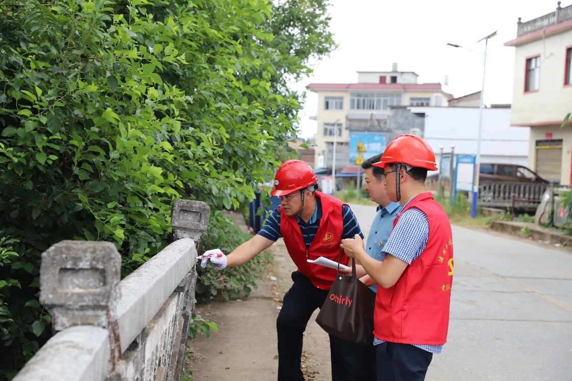党课结束后,建筑与交通工程学院交通工程系教工党支部全体成员在全州县凤凰镇副镇长肖薇、大坪村驻村第一书记王忠及村委干部的带领下,深入到大坪村交通隐患区域施工第一现场,实地勘察交通隐患区域和桥梁风险点,对症下药,给出了切实可行的解决方案,建筑与交通工程学院交通工程系教工党支部带来的施工队伍按照施工方案紧锣密鼓地开展施工。