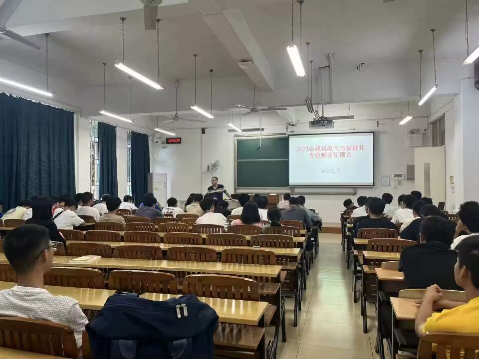 在建筑电气与智能化专业新生见面会上,建筑电气与智能化专业负责人杨建波老师对2023级建电专业新生的到来表示热烈欢迎和诚挚的问候,详细介绍了专业的发展历程、师资力量、毕业生就业情况及近年来所获成绩。