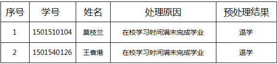 关于对莫枝兰、王香港同学学籍预处理的公示