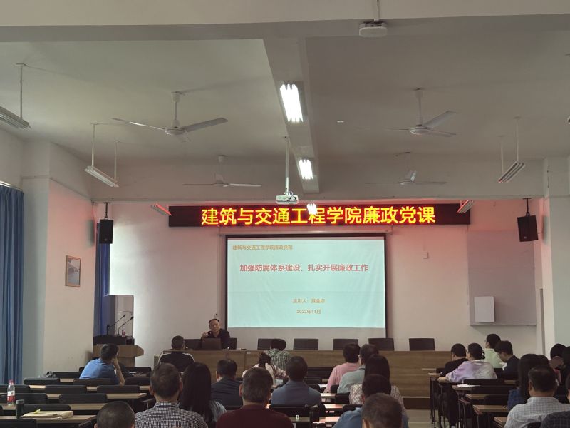 近日,学院在建交大楼401室举办以《加强防腐体系建设、扎实开展廉政工作》为主题的廉政教育党课,学院党委书记黄金标主讲,全体教职工参加。