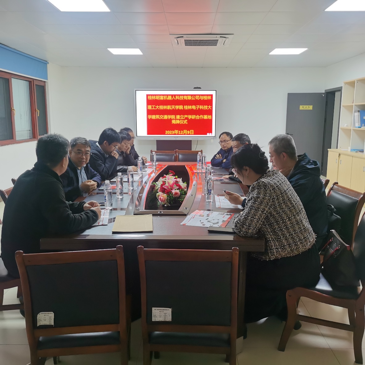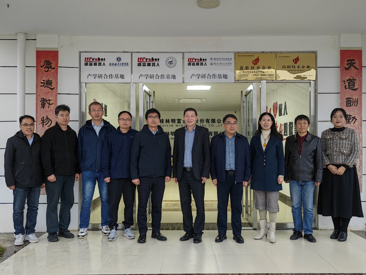 12月10日,院长王涛、建筑技术与设备工程系杨建波、王金辉老师等一行赴桂林明富机器人有限公司,参加我院与桂林明富机器人有限公司的“产学研合作基地”揭牌仪式活动。一同参与揭牌的单位还有桂林理工大学、桂林航天工业学院。