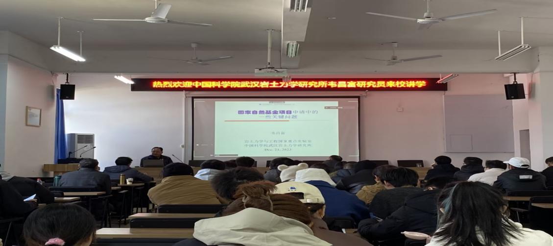 2023年12月21日,中国科学院武汉岩土力学研究所韦昌富研究员应建筑与交通工程学院、广西智慧交通重点实验室邀请,在三亿官方官网三亿(中国)_三亿(中国)花江校区建交大楼A401报告厅为我院师生作了题为“国家自然基金项目申请中的一些关键问题”的学术报告,报告由建筑与交通工程学院吴迪副院长主持。