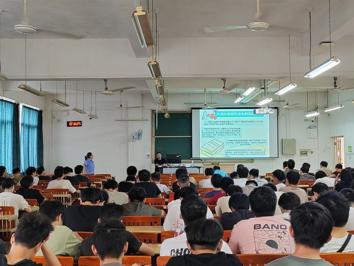 5月31日下午,我院2022级全体成员于5教203室参加交通安全教育活动。活动邀请了七星区交警苏警官、唐警官为同学们讲授交通安全知识。