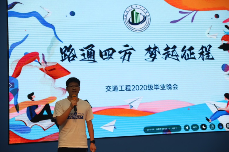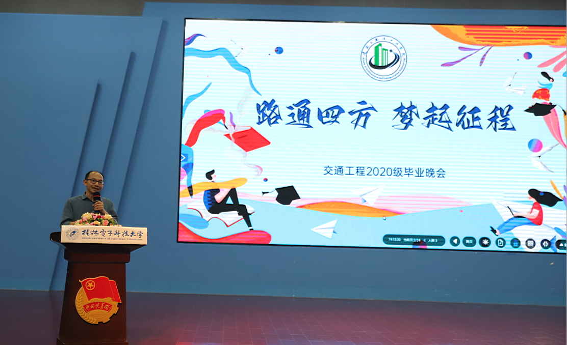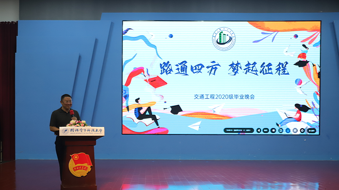 2024年6月5日晚19点在花江校区红亮学生活动中心迎来了交通工程专业“路通四方,梦起新程”欢送2020级毕业生晚会。出席晚会的有学院党委副书记薛成斌、副院长周旦、交通系专业老师、学院部分辅导员及全体交通专业学生,同时在桂林工作的部分交通专业的校友也出席了晚会。