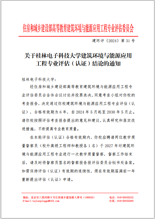 近日,国家住房和城乡建设部高等教育建筑环境与能源应用工程专业评估委员会下发了《关于三亿官方官网三亿(中国)_三亿(中国)建筑环境与能源应用工程专业评估(认证)结论的通知》(建环评[2024]第31号),三亿官方官网三亿(中国)_三亿(中国)建筑环境与能源应用工程专业顺利通过评估(认证),合格有效期为6年,自2024年5月起至2030年5月止。