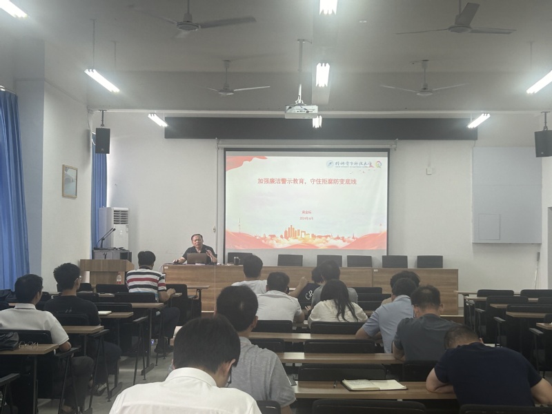 会上主要从警示案例、案例启示,扎实推进学院廉政建设等三个方面讲述,黄金标书记强调:一是要加强理想信念教育,筑牢思想防线,教育引导广大党员干部自觉锤炼政治品格,不断提高政治判断力、政治领悟力、政治执行力,增强“四个意识”,坚定“四个自信”,做到‘两个维护“。二是要强化纪律教育,严明纪律底线。全面落实全面从严治党的主体责任,管好班子,带好队伍,始终把党风廉政建设工作与学院改革发展工作同考虑、同部署、同落实。三是要抓实监督管理,始终严在日常。不断完善权力运行监督机制,营造一个严密的受监督和约束的环境,让党员干部习惯在制度的立法中办事用权。四是要注重建章立制,健全长效机制。认真梳理廉政风险点,加强权力制约,完善制度,规范流程,健全制度体系,并严格执行,用制度管权、管人、管事、管钱,持续营造风清气正的政治生态和教书育人的良好环境。