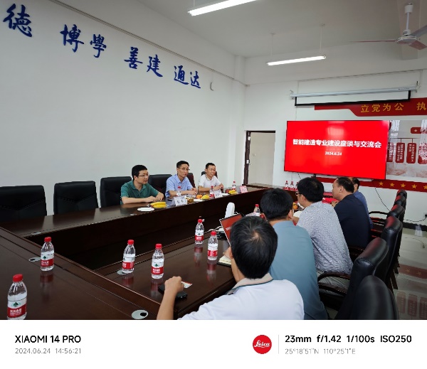 交流会上,学院领导对校外专家表示热烈欢迎,介绍了我院专业建设情况,以及当前面临的挑战。三位专家分别介绍了申报新专业的历程与经验,并提出相关建议。会后,专家组一行参观了我院智能建造实验中心。