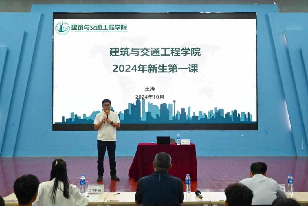 10月8日晚,建筑与交通工程学院院长王涛以“启航新征程,筑梦在建交”为主题在红亮学生活动中心,为2024级本科新生讲授“院长第一课”。学院党委副书记薛成斌、2024级辅导员、班主任、助理班主任和全体新生参加活动。
