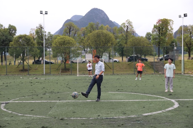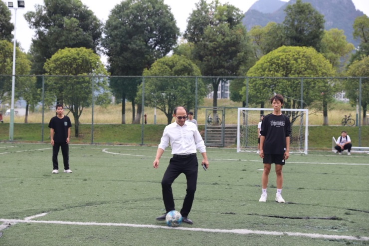在运动员和裁判员代表发言后,王涛院长和周旦副院长为比赛开球,交通工程专业第17届“交通杯“五人制足球赛正式开幕。
