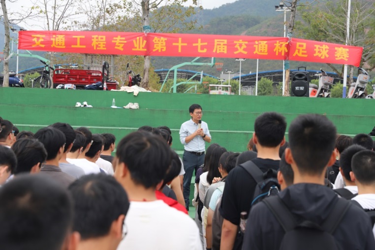 2024年10月15日,交通工程专业第17届“交通杯”五人制足球赛开幕式在花江校区D区足球场进行。王涛院长、周旦副院长及交通工程专业的主要老师出席了开幕式。