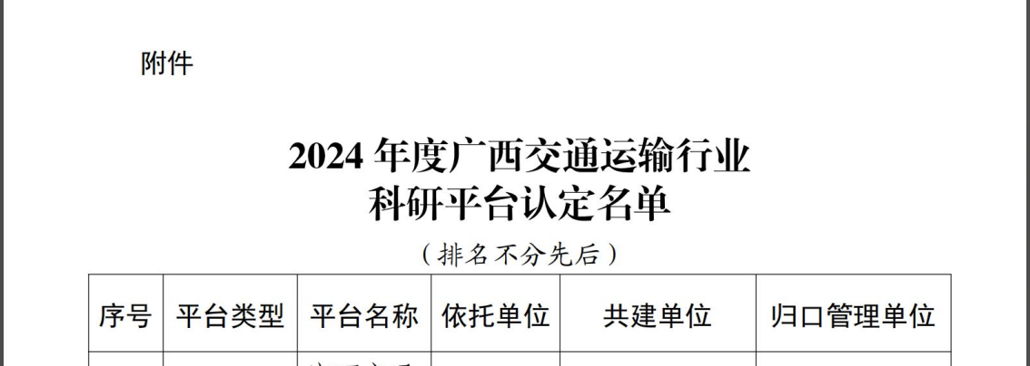 我院新增1家广西交通厅运输行业重点实验室和1家广西交通运输行业研发中心