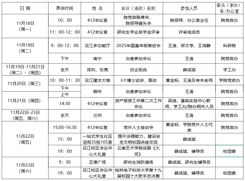 2024年秋季学期第11周建筑与交通工程学院重要会议(活动)安排