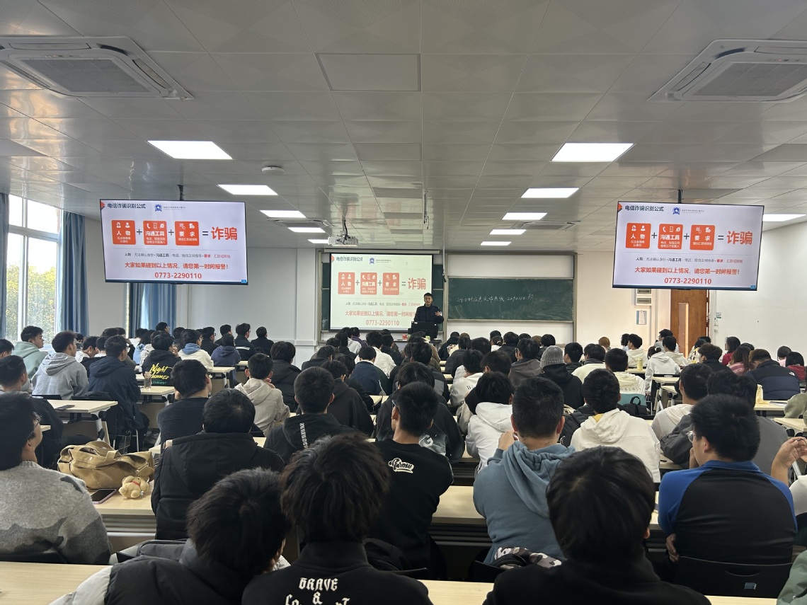 12月3日,建筑与交通工程学院2023级邀请杨政江民警在17教211开展反诈宣传讲座,2023级级全体学生参会。