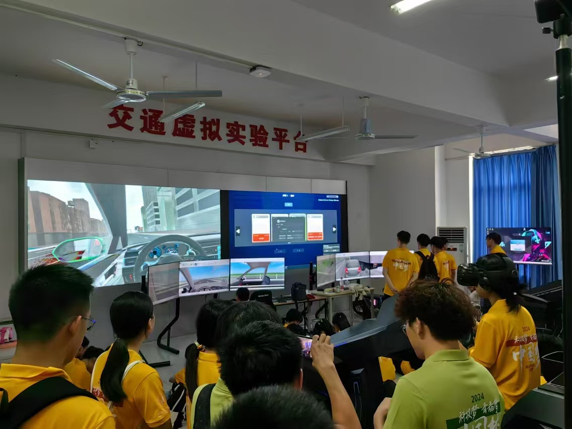 8月4-10日,来自青少年高校科技营的90名师生到广西智慧交通重点实验室,学院领导、交通工程系主任周长红老师就实验室智慧管控平台、自动驾驶平台、智能网联汽车驾驶平台进行了教学讲解和演示,同学们热情高涨,亲自体验了各种驾驶模拟设备,并跟老师进行了深切交流。
